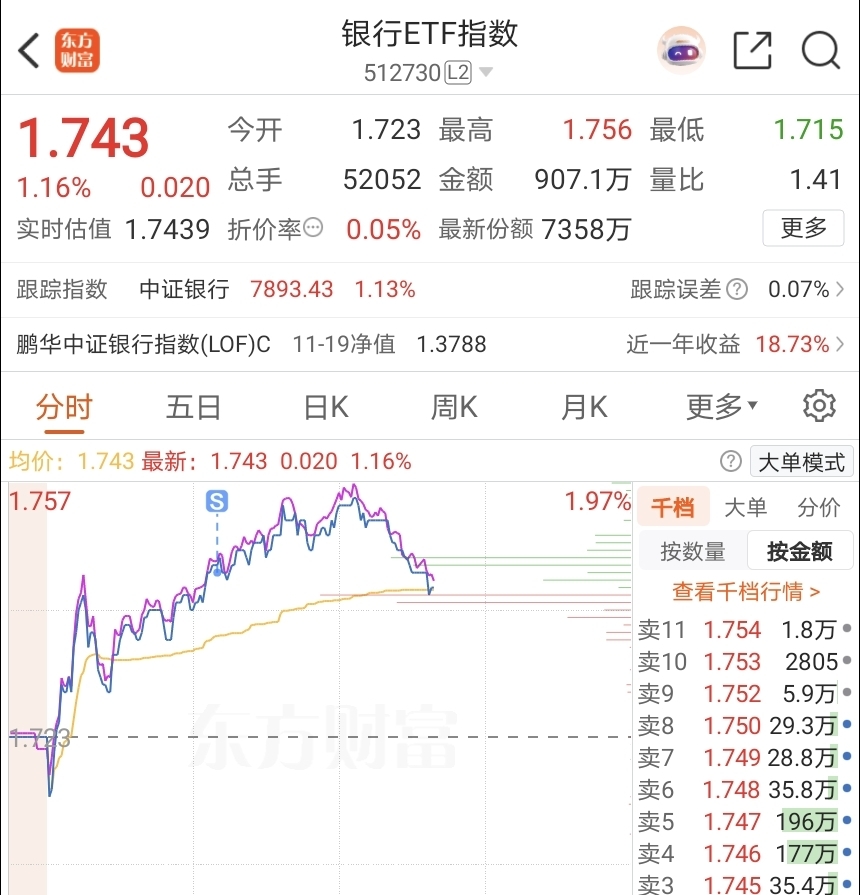 $银行ETF指数(SH512730)$ 还以为卖飞了,哈哈不错不错