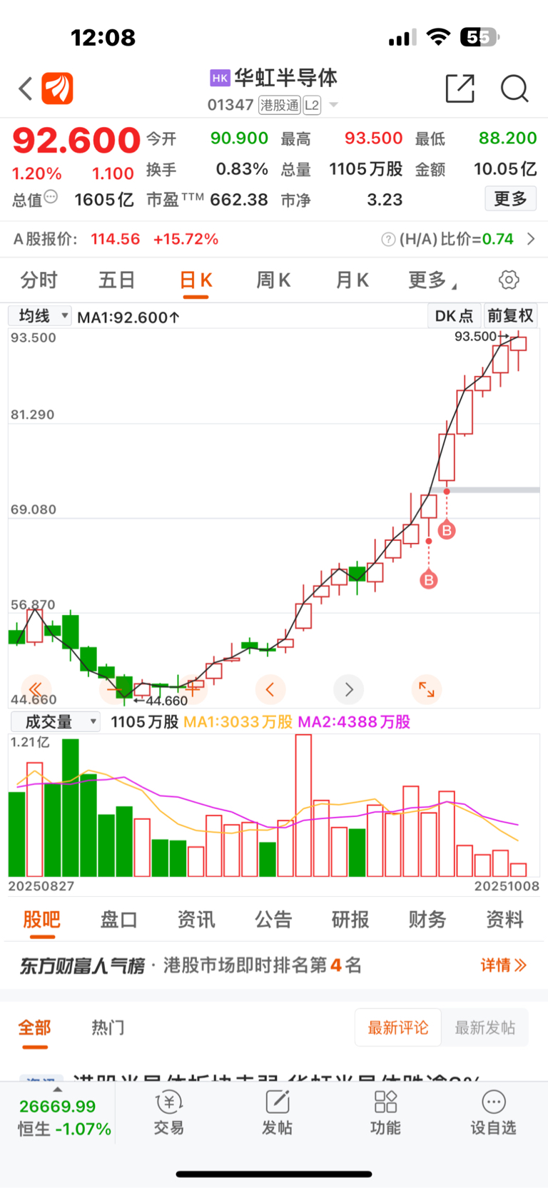 国庆节前两天,本人力荐买入港股的华虹半导体,目前涨幅高达26%
