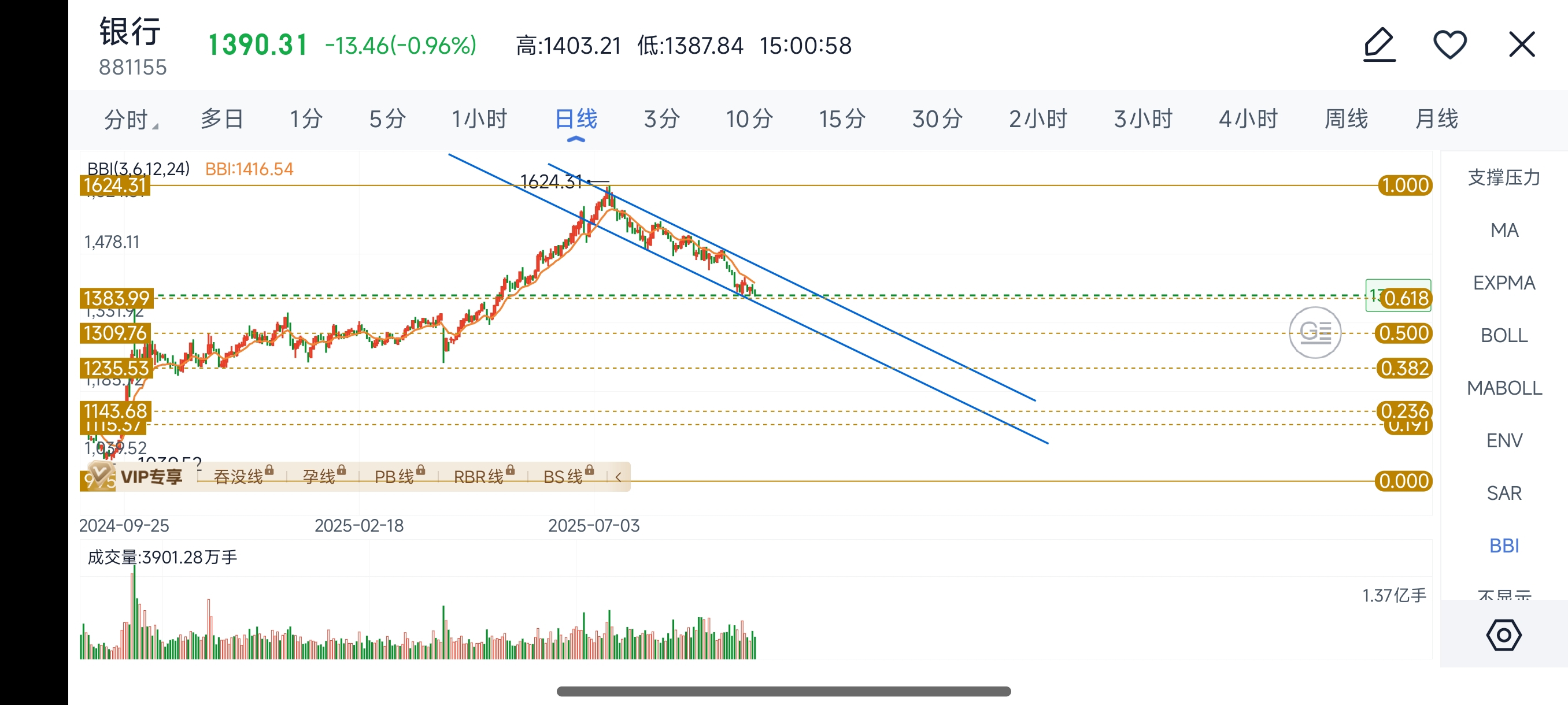 目前银行亏2w银行还是下跌趋势现在在支撑位黄金分割0.618上,如果支撑住了,大