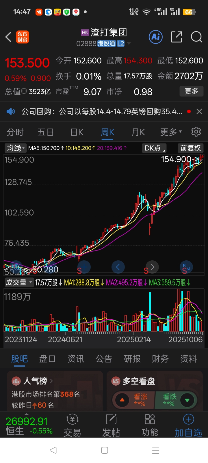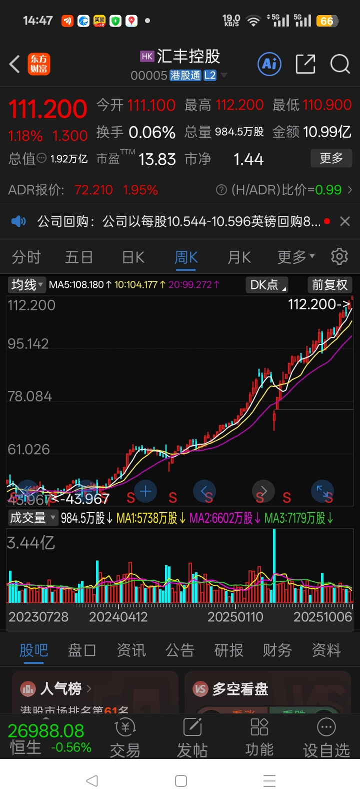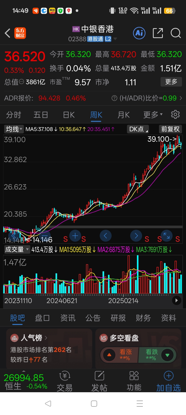 即使是中资控股的中银香港的股价也走势挺好的,2025年10月6日最新价格36.52元,最新市盈率ttm是9.59,市净率是1.12。估值高于内地A股银行股。