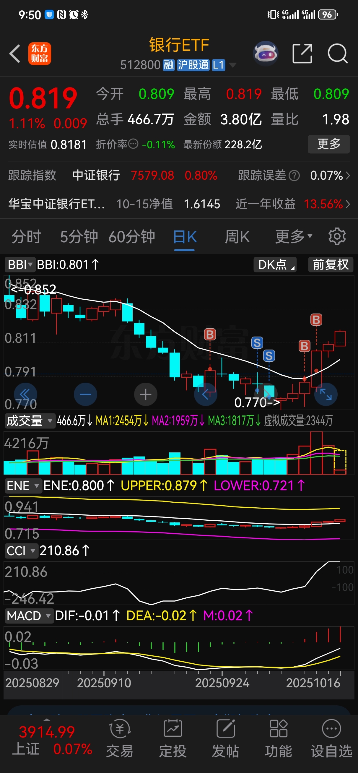 $银行ETF(SH512800)$ 执行交易纪律,及时纠错