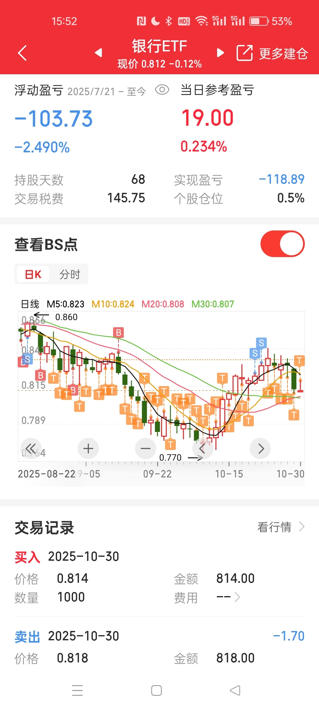 $银行ETF(SH512800)$ 套的好辛苦
