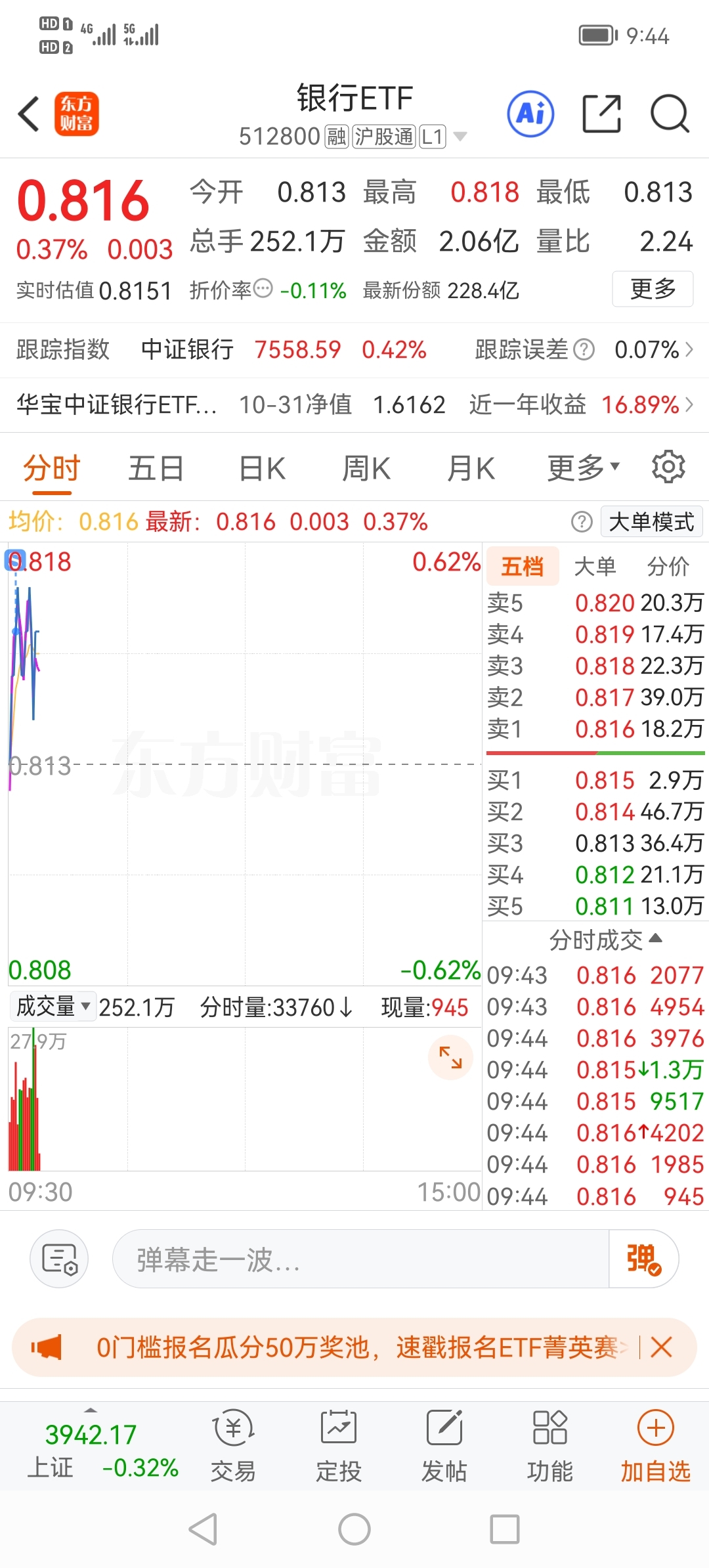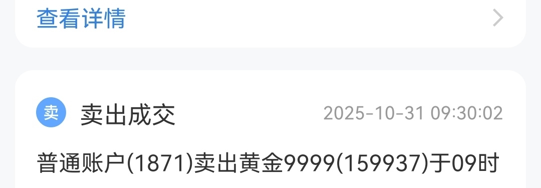 上周三进黄金,上周四开盘大跌躺平黄金尾盘拉回来,星期五清仓黄金进了银行,今天抛了