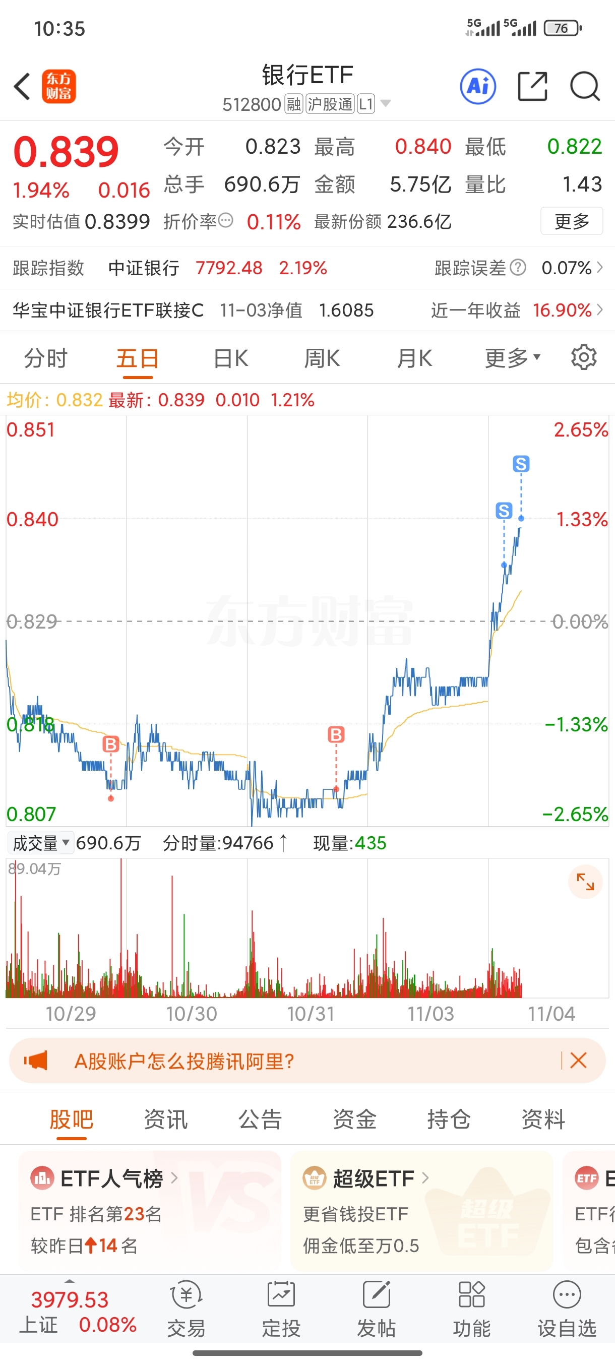 $银行ETF(SH512800)$ 。银行与科技是跷跷板轮动状态。大家把握好震荡做差机会