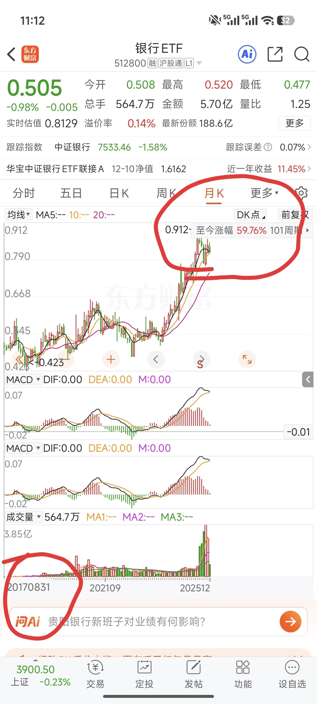 $银行ETF(SH512800)$ 虽然ETF不分红,但是时间拉长和指数的涨跌幅差距就出来了。个股分红归入总值。也能享受长期红利