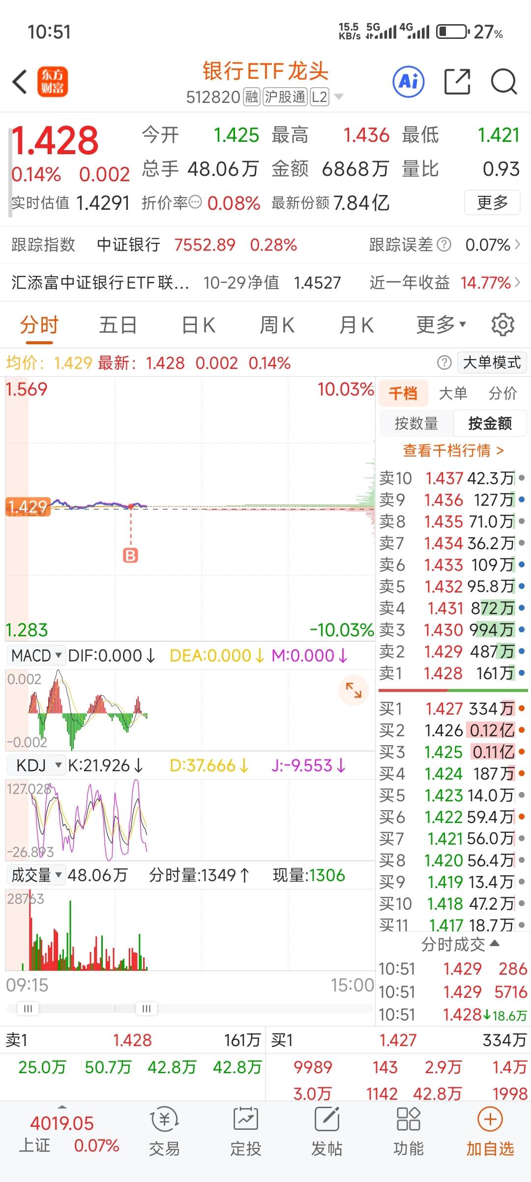 $银行ETF龙头(SH512820)$ 我买蹦银行的,要么让我涨,要么你就跌