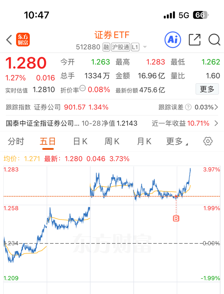 $证券ETF(SH512880)$ 昨天尾盘进的速度涨