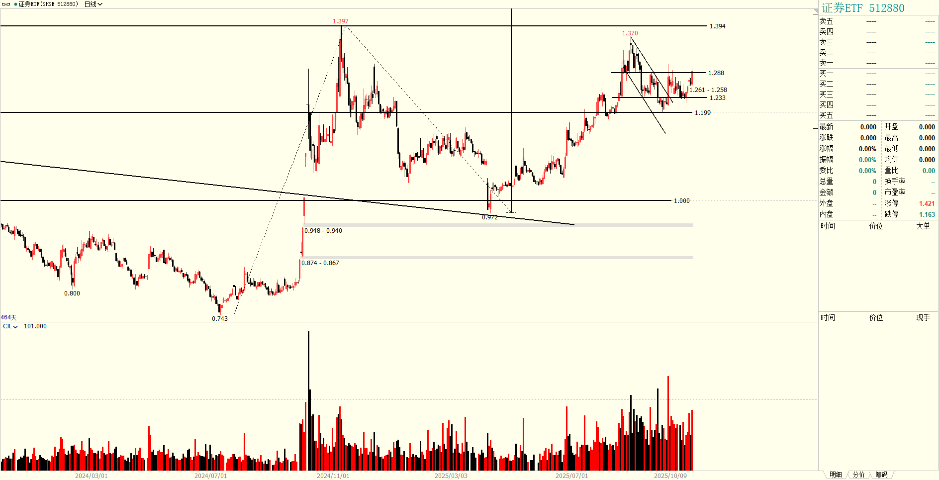 证券ETF,头肩底,对应新一波主升浪,空间可观;
