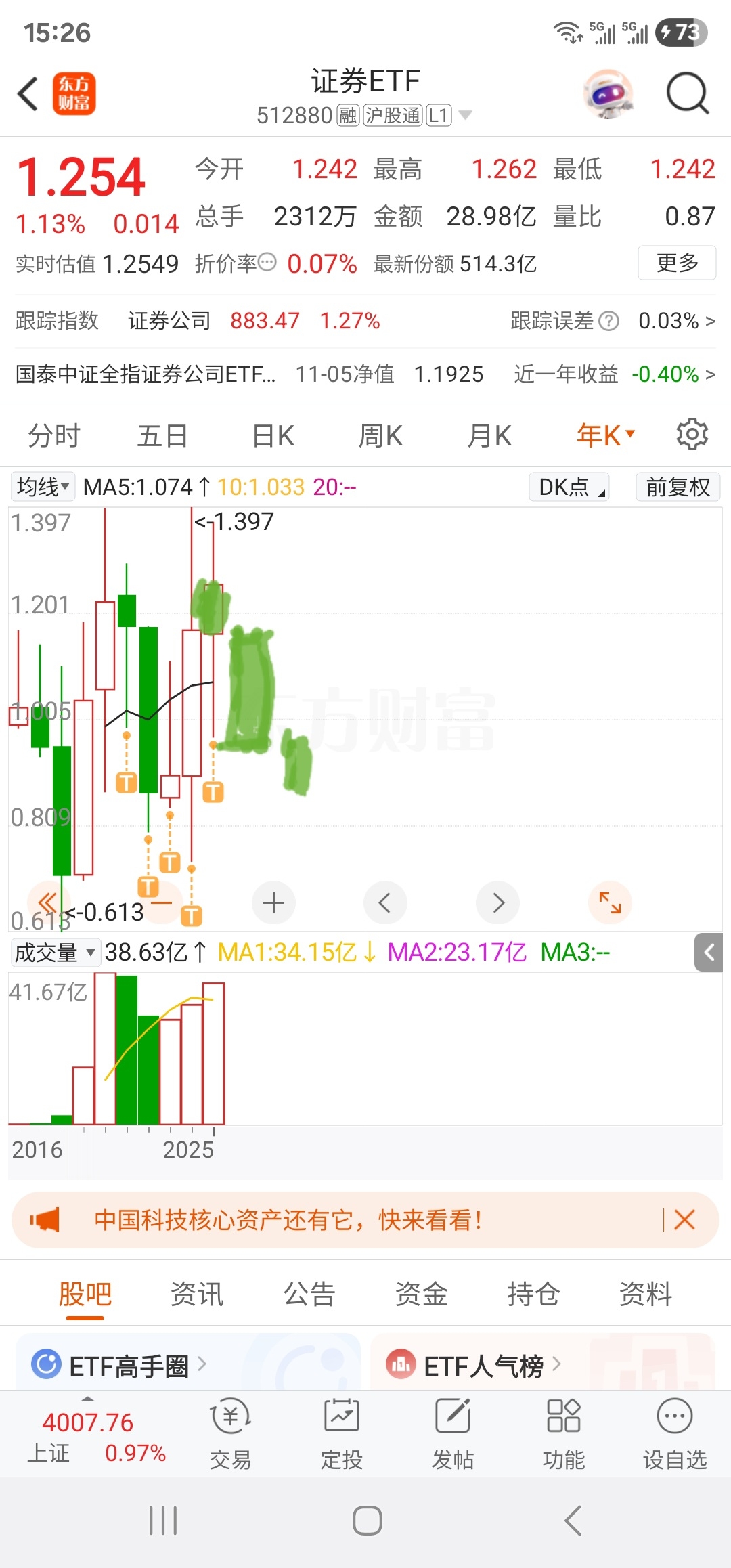 $证券ETF(SH512880)$ 你们搞错了,所以板块证券的位置是最高的,连续大涨了三年,一般都是才连续涨两年,今年证券大概率会收绿而且继续阴跌两年,去看看所有指数哪有连续涨三年以上的呀涨多了一定会收割的,半导体科技才是低位又是热门板块有主力在,要抄底去白酒医药沪深300这些位置才是低位