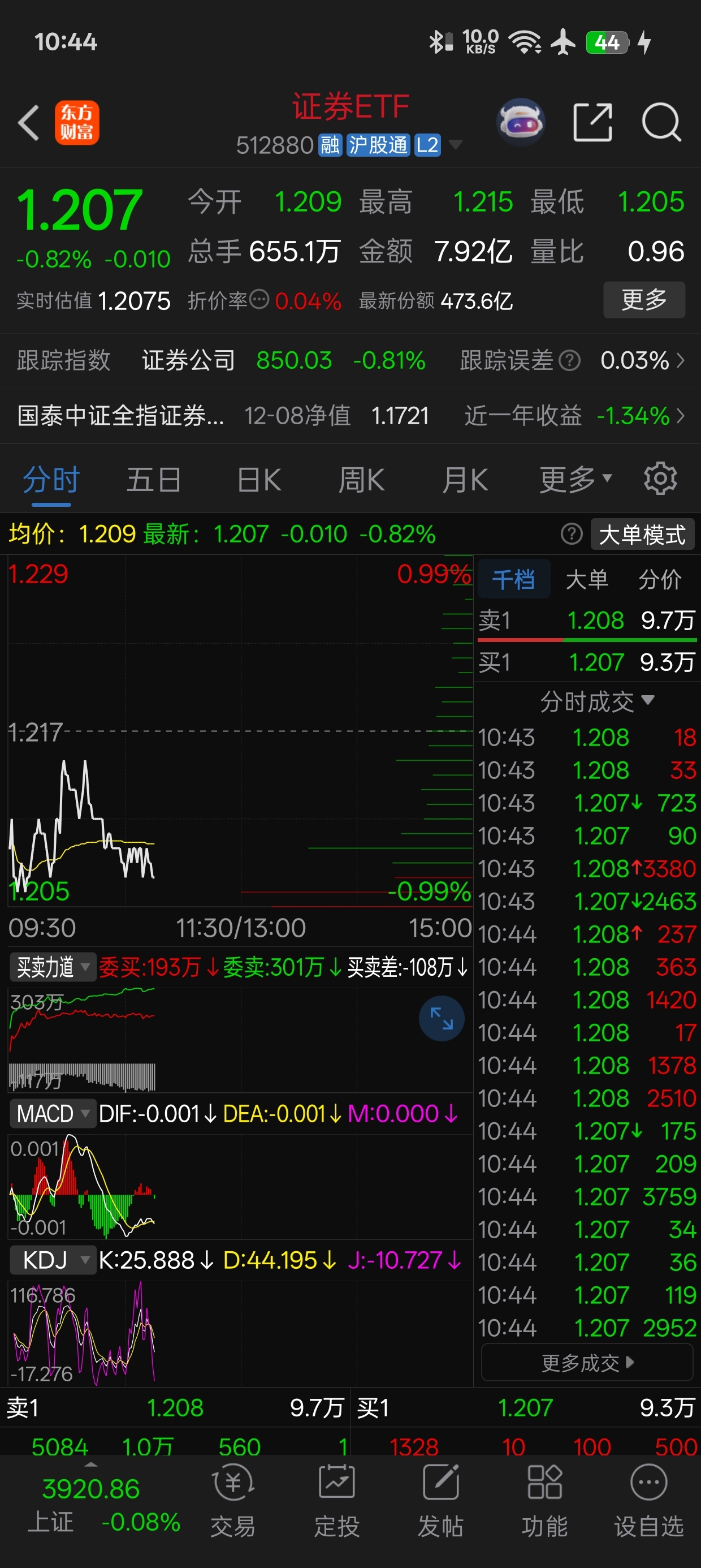 $证券ETF(SH512880)$ 这是摆照型呢,一早上的十多万的卖单砸盘成功了。一顿撤单卖出。