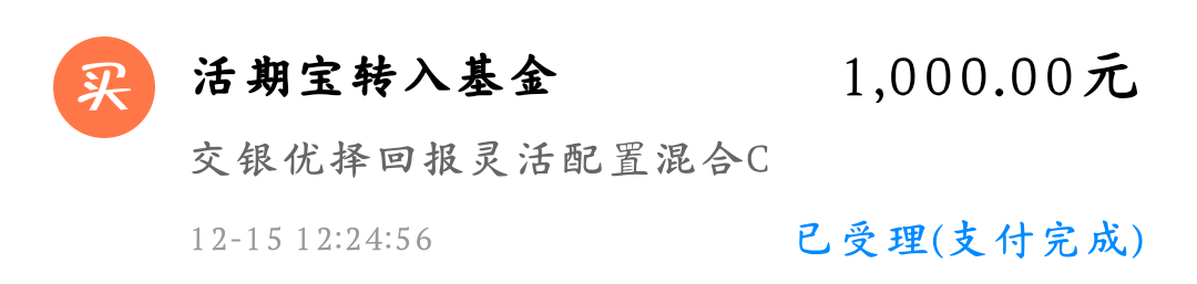 买进1000的 $交银优择回报灵活配置混合C(OTCFUND|519771)$