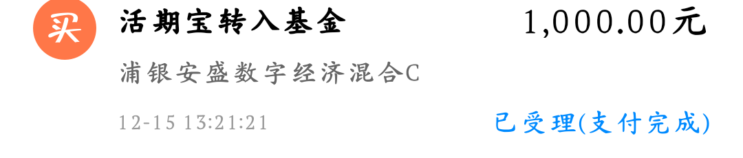 买进1000的 $浦银安盛数字经济混合C(OTCFUND|025422)$