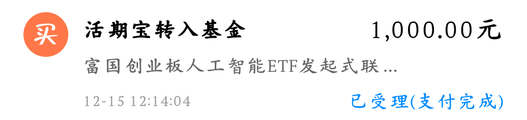 富国的这只基金追踪创业板人工智能的表现,覆盖了更多的CPO产业股,弹性更好,上涨的时候赚钱效应会更明显,短期跌了是机会,我又来加仓1k的筹码。