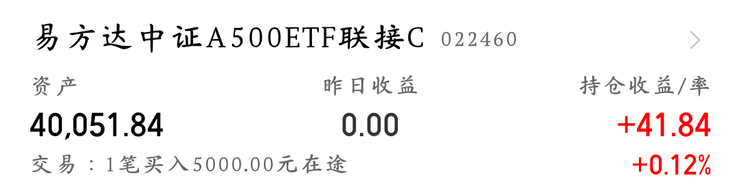 加仓买进5000的 $易方达中证A500ETF联接C(OTCFUND|022460)$