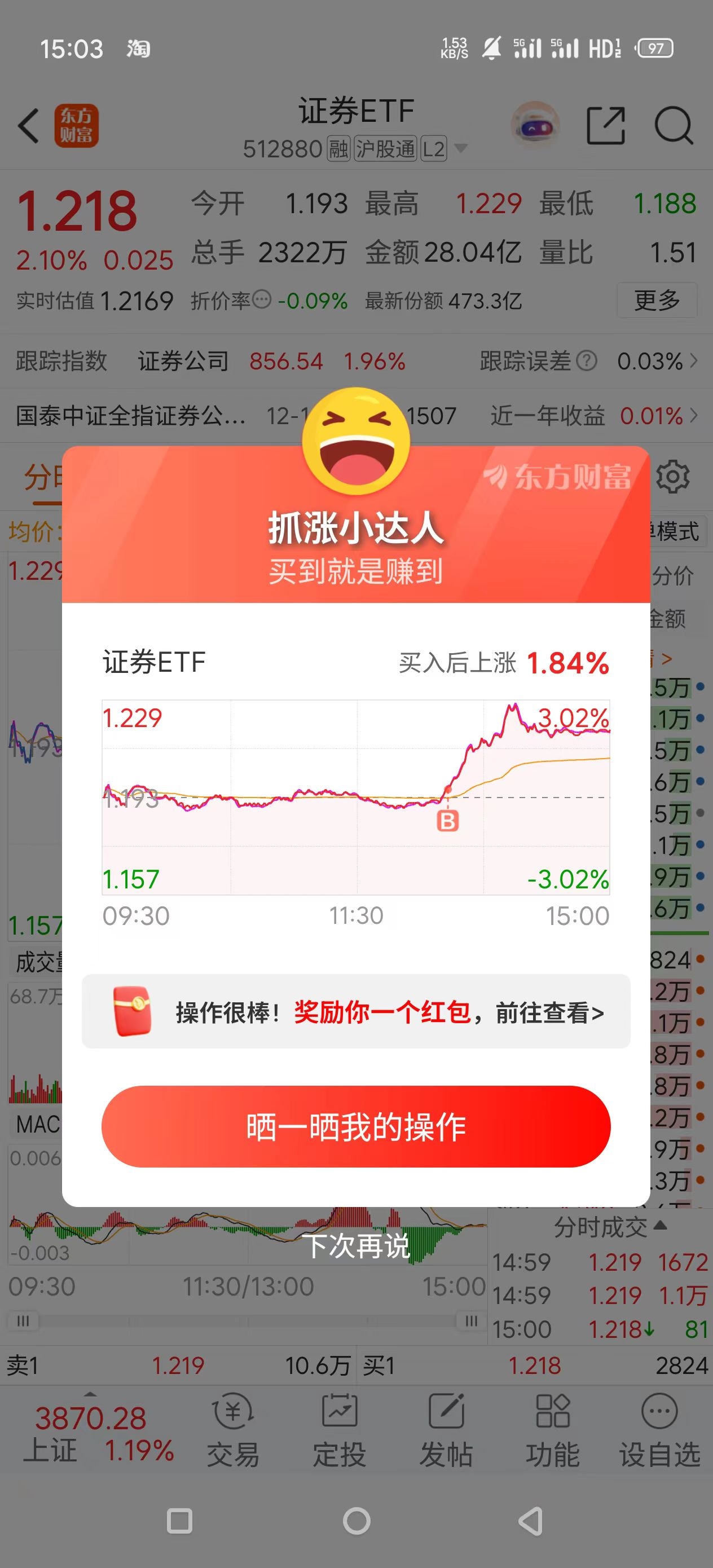 $证券ETF(SH512880)$ 又进场了,后面看涨
