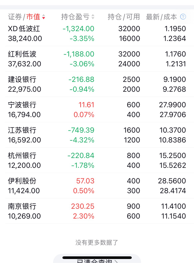 $红利低波ETF(SH512890)$ 今天逢低买入南京银行300股$南京银行(SH601009)$ ,$XD红利低波动ETF(SH563020)$ 8000股。