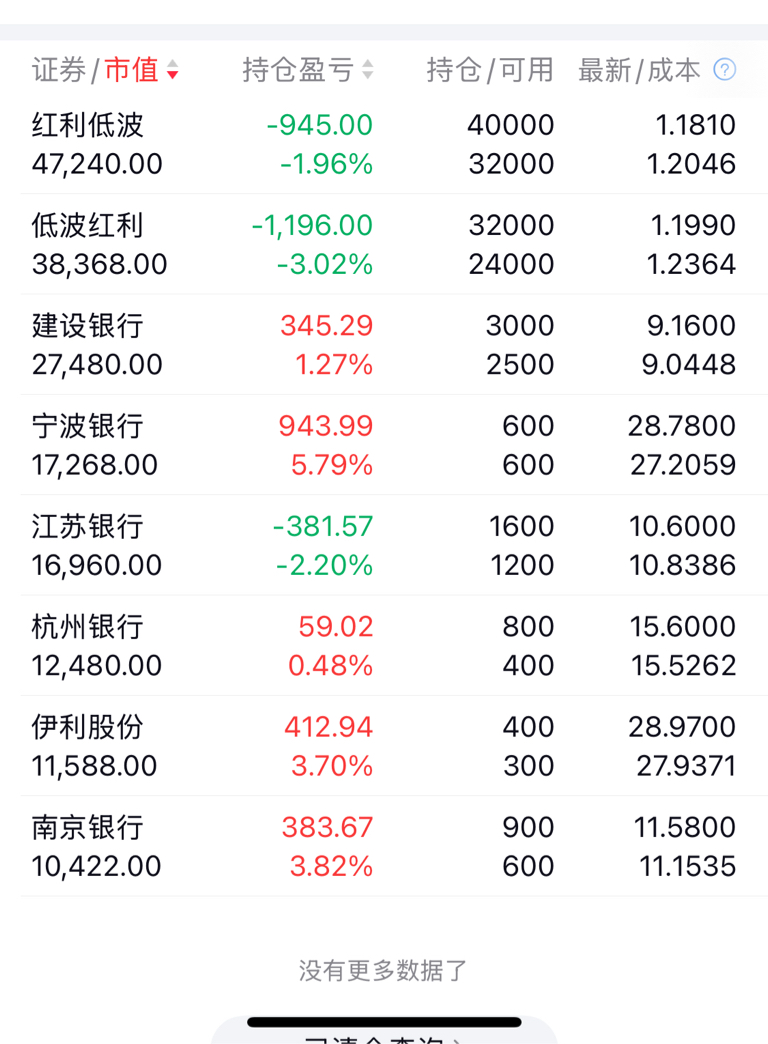 $红利低波ETF(SH512890)$ 今天逢高卖出$宁波银行(SZ002142)$ 200股。