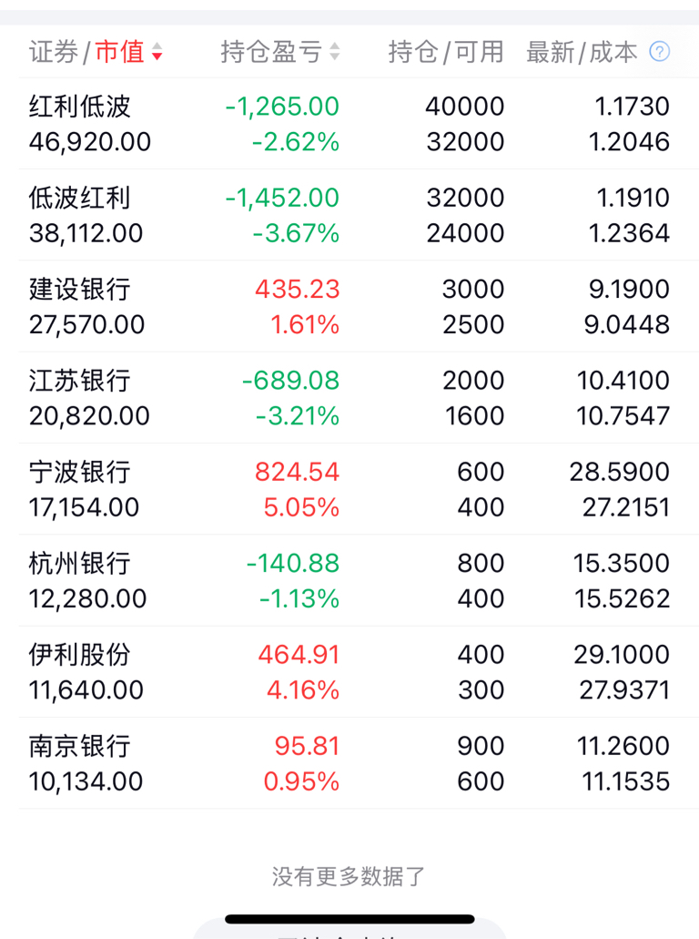 $红利低波ETF(SH512890)$ 今日逢低买入江苏银行$江苏银行(SH600919)$ 400股。