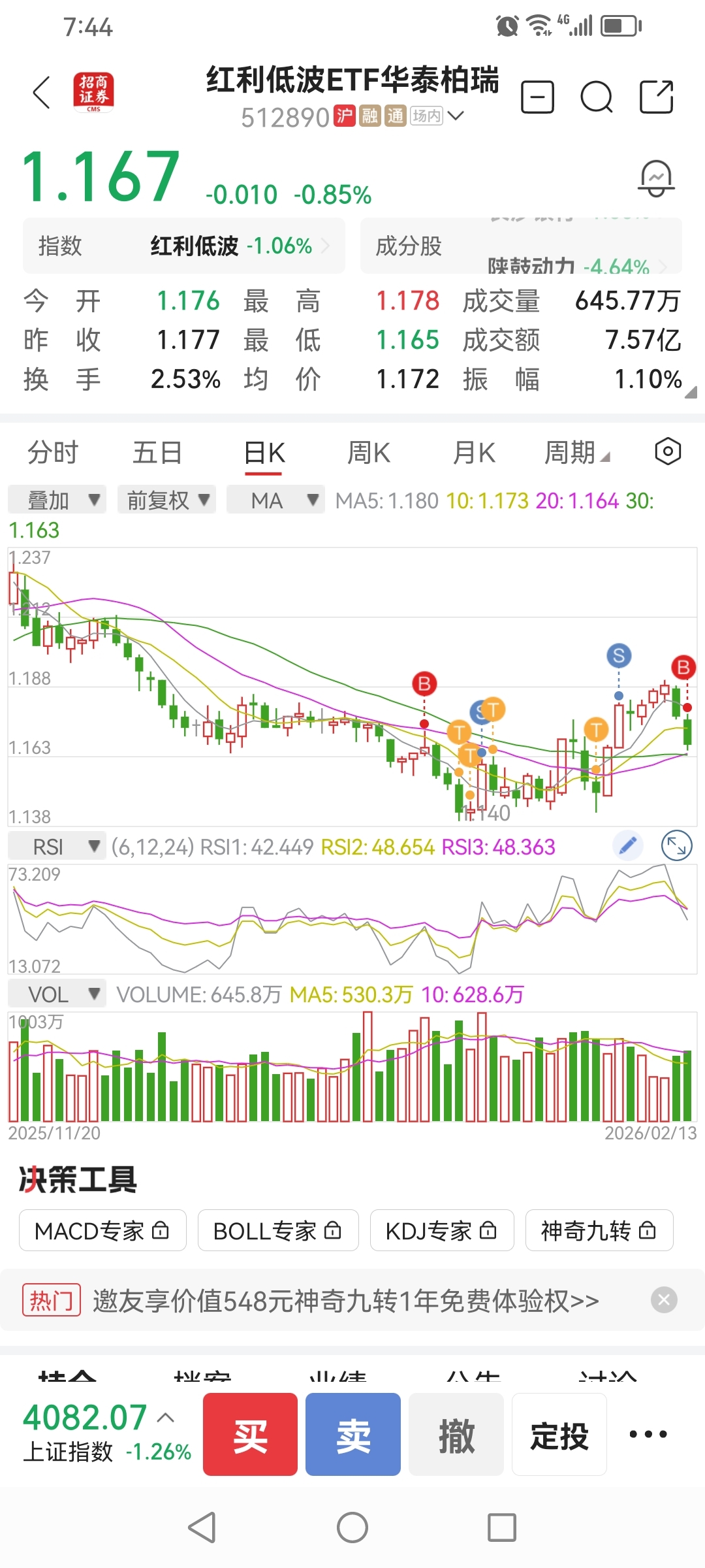$红利低波ETF华泰柏瑞(SH512890)$ 按计划今天在1.7以下加仓了,是对是错?