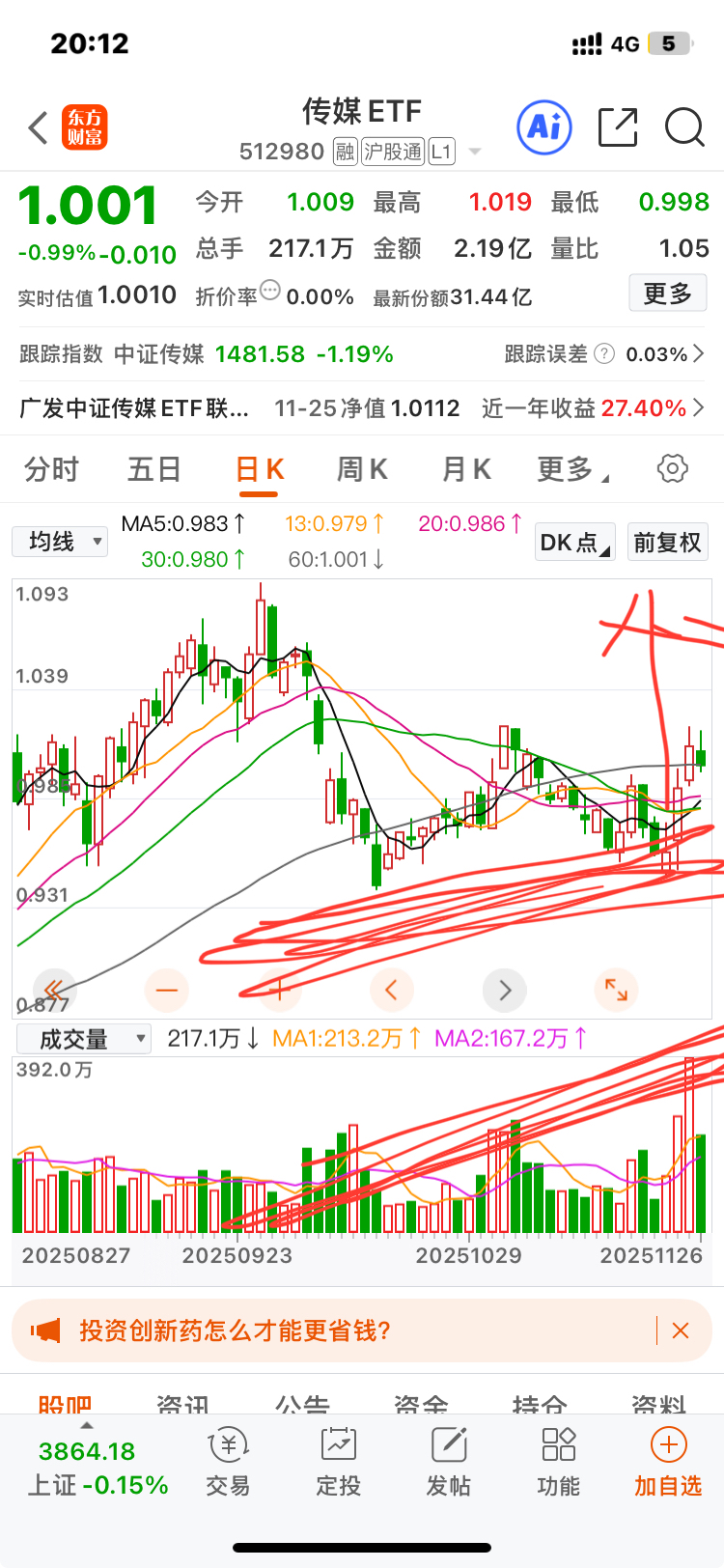 $传媒ETF(SH512980)$ 差2点0一,冲