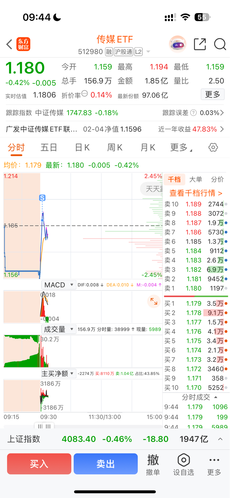 $传媒ETF(SH512980)$ 怎么老是低开那么多吓人啊,还好赶紧把昨天补仓的赚了一点卖了。