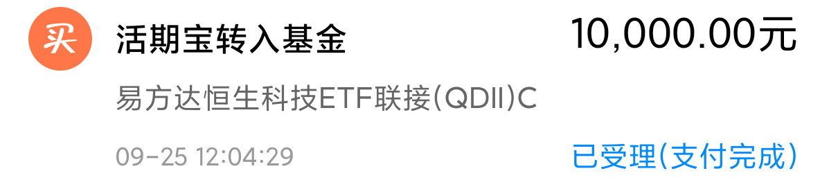买进10000的 $易方达恒生科技ETF联接(QDII)C(OTCFUND|013309)$