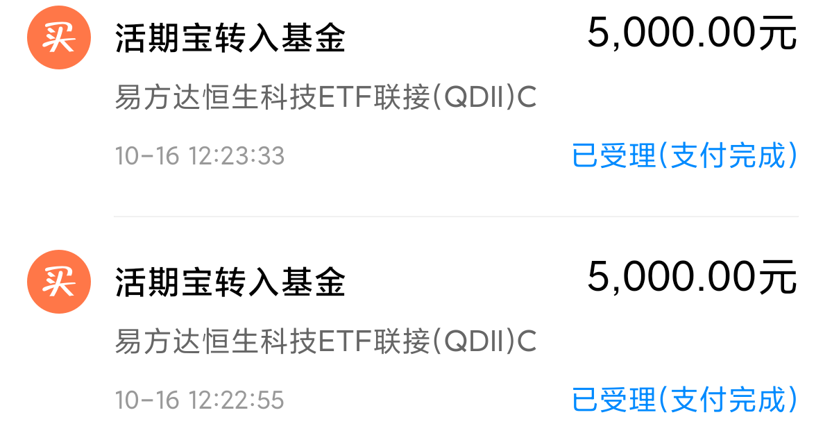 加仓10000的 $易方达恒生科技ETF联接(QDII)C(OTCFUND|013309)$