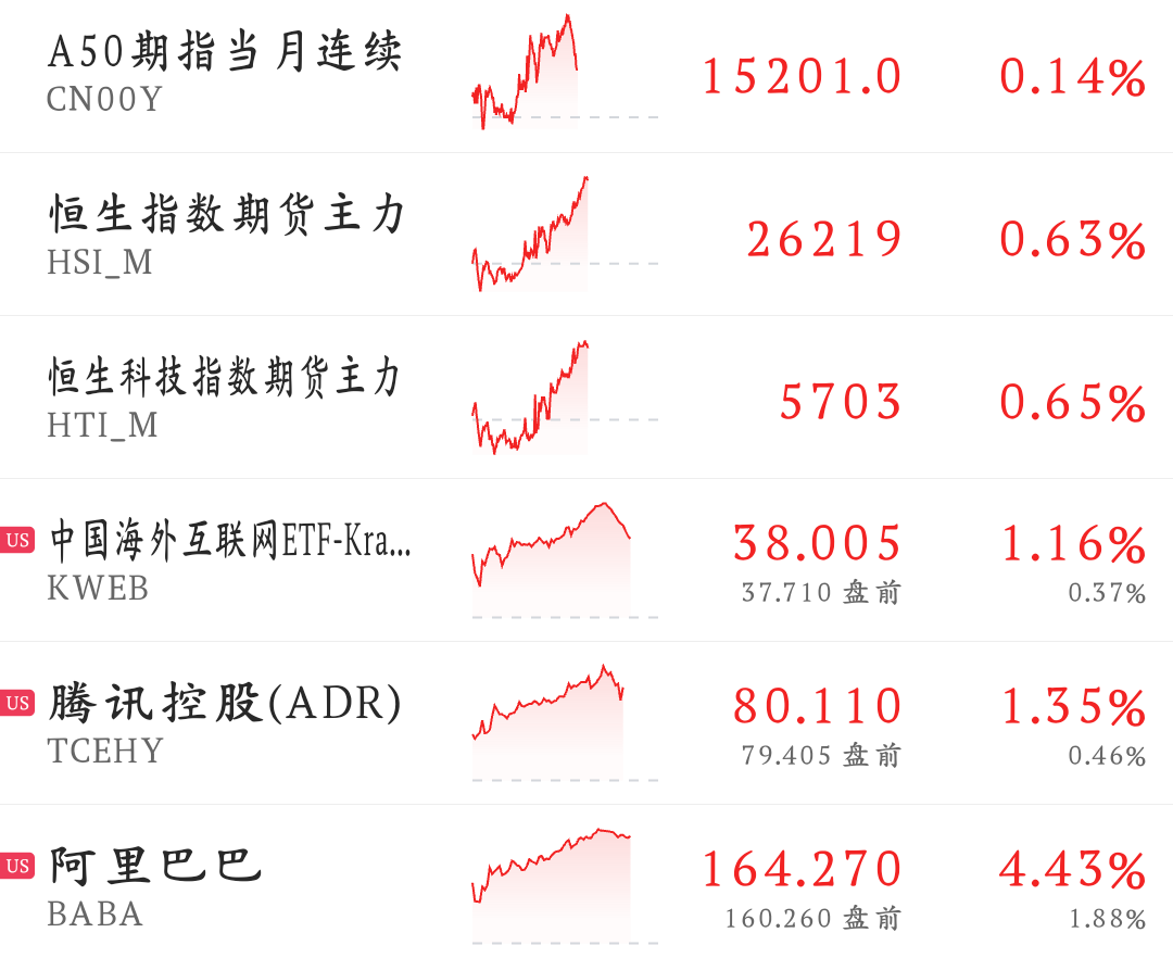 晚盘的中概股表现还不错,中概互联网震荡上涨了1个多点,腾讯控股也震荡上涨1个多点,阿里巴巴更是涨超4%,陆续震荡走好的概率增加,就看能否带动后续港股科技大涨了。