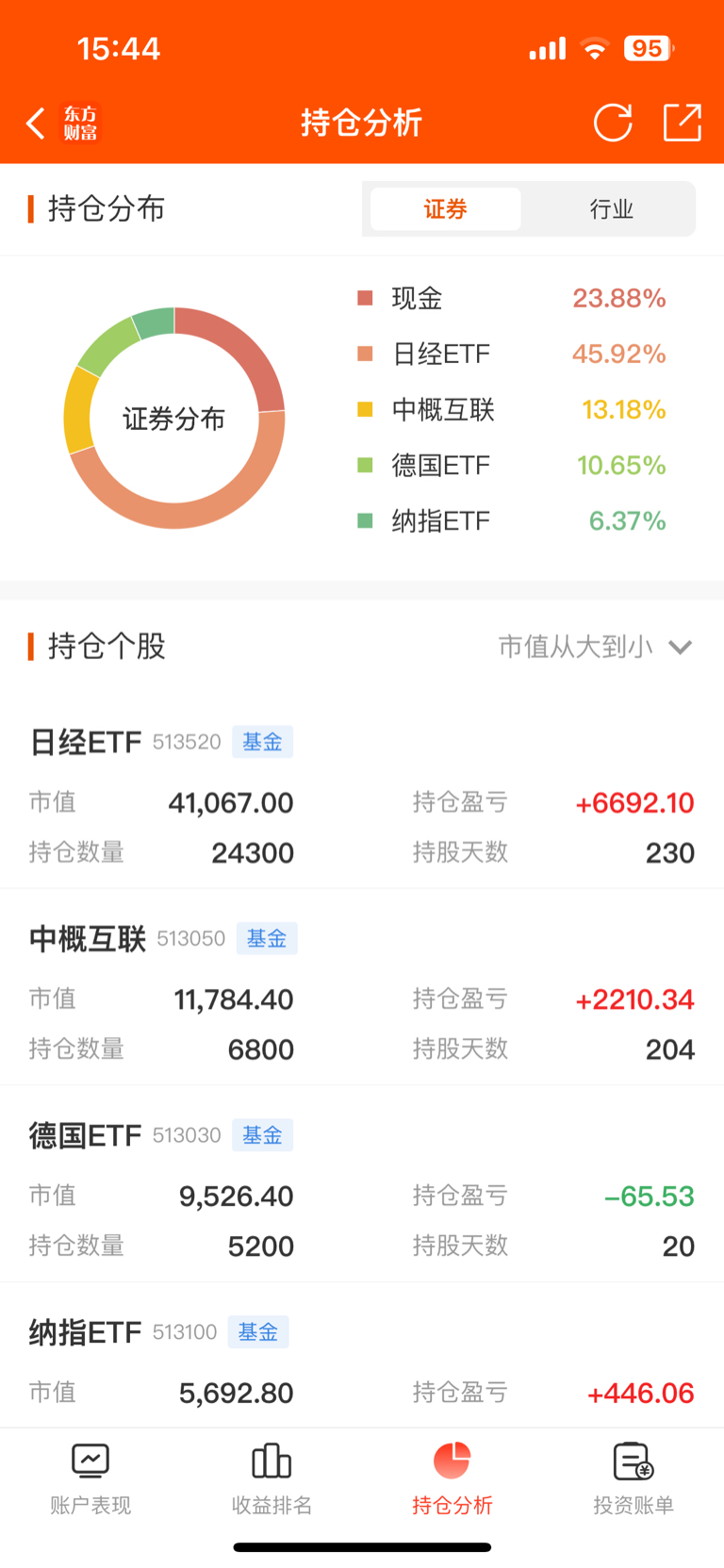 $德国ETF(SH513030)$ 定投第 18天,今日买入德国ETF600股,卖出日经ETF2600股,卖出纳指ETF1000股,卖出中概互联ETF900股,今日盈亏-71元,今年累计盈亏11049元,种一棵树最好的时间是十年前,其次是现在~(实盘,原创)只记录分享,不做推荐!盈亏自负!#炒股日记#