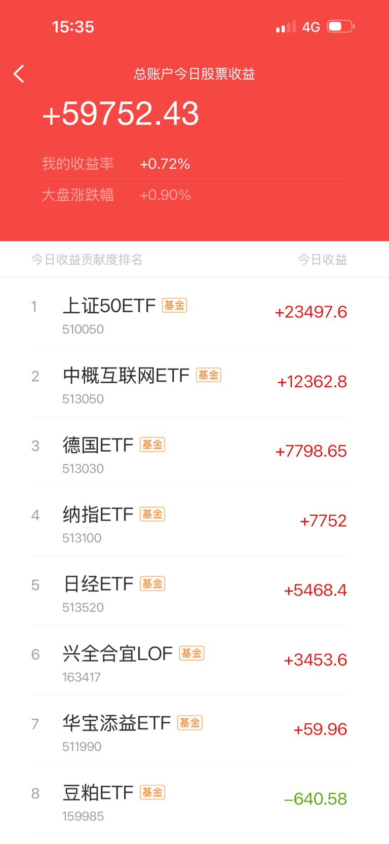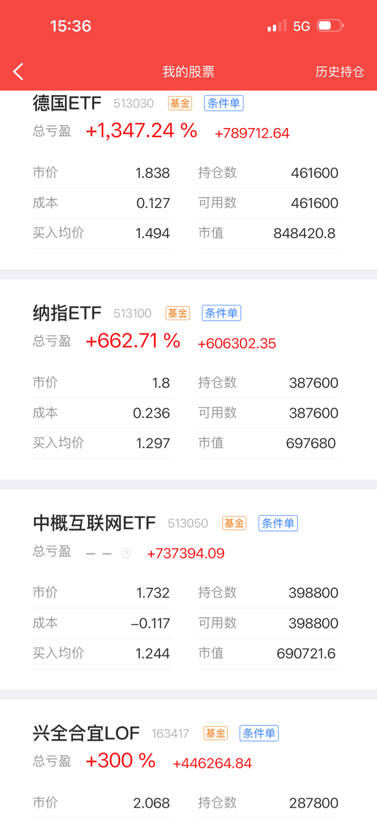 定投第2625天,今日买入德国ETF3000股,今日盈亏+5.97万元,累计盈亏