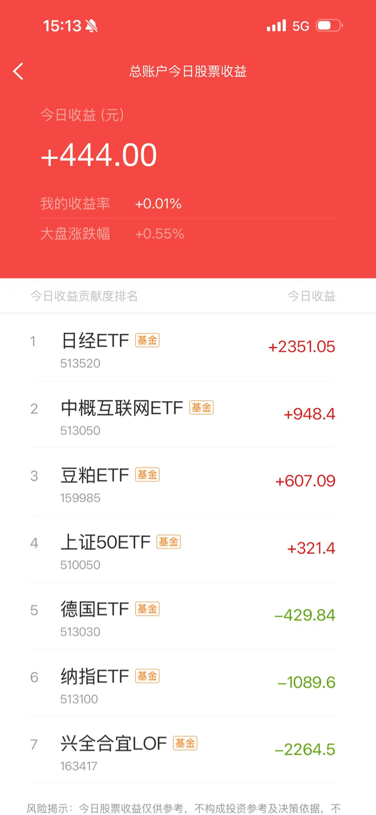 定投第2660天,今日买入德国ETF2900股,今日盈亏+444元,累计盈亏+4
