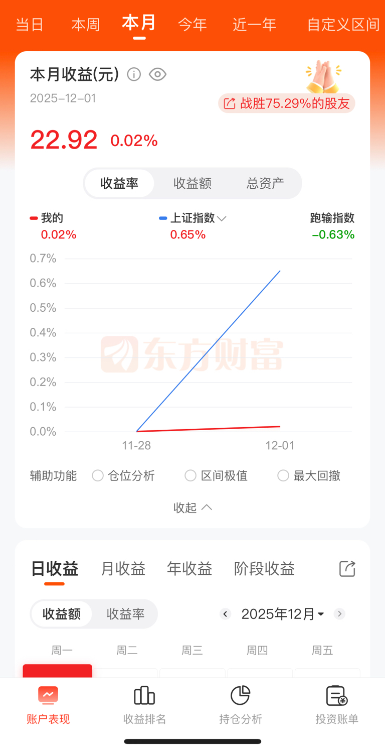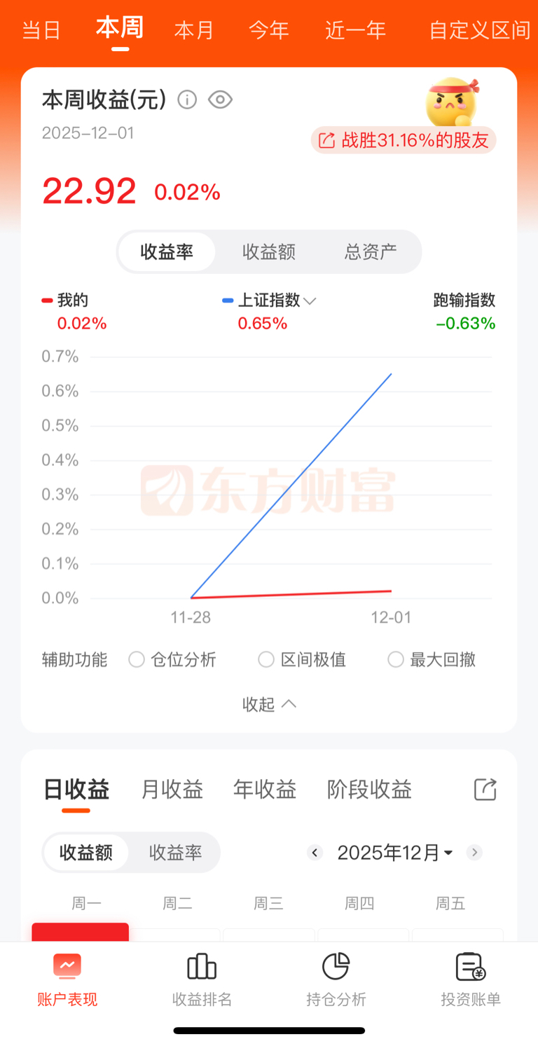 定投第85天,今日盈亏22元,今年累计盈亏16288元,感觉进早了,在观察观察吧