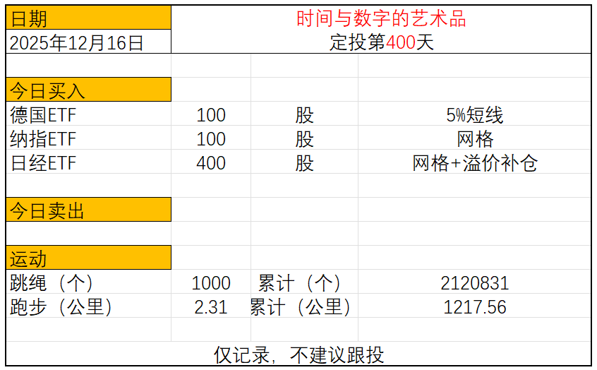 运动与投资第400天2025年12月16日今日定投:德国ETF买入100股日经E