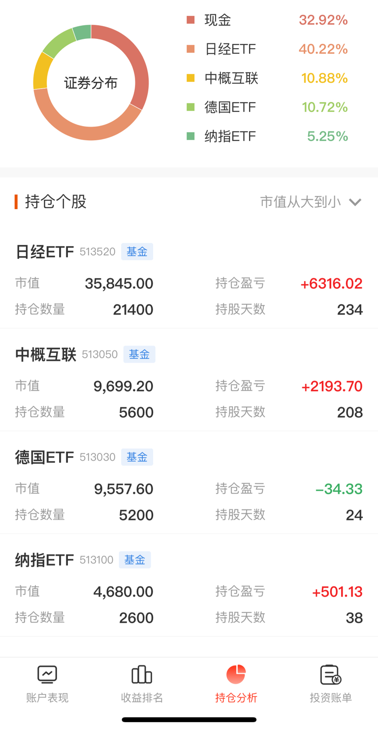 定投第22天,卖出日经ETF2900股,卖出中概互联1200股,今日盈亏548元