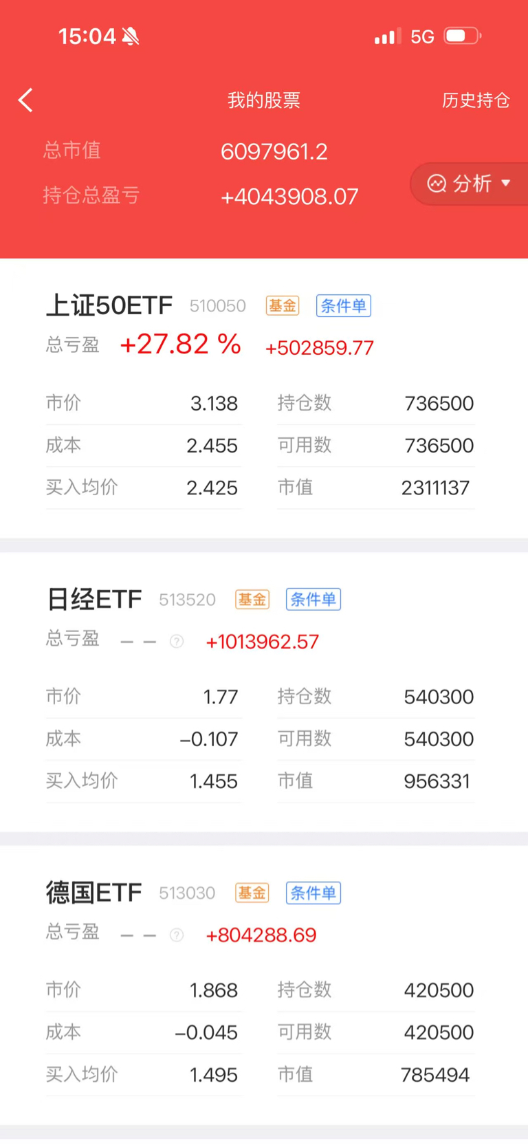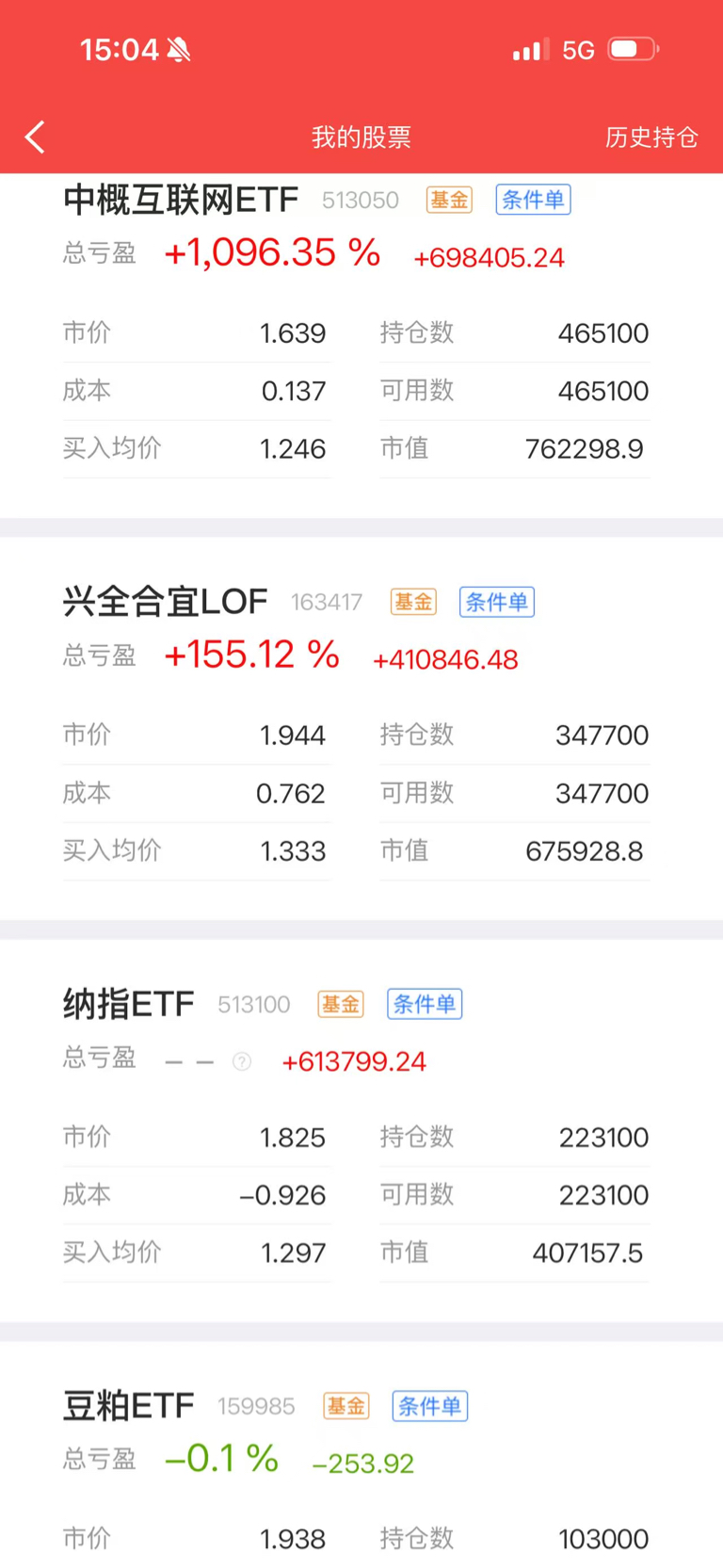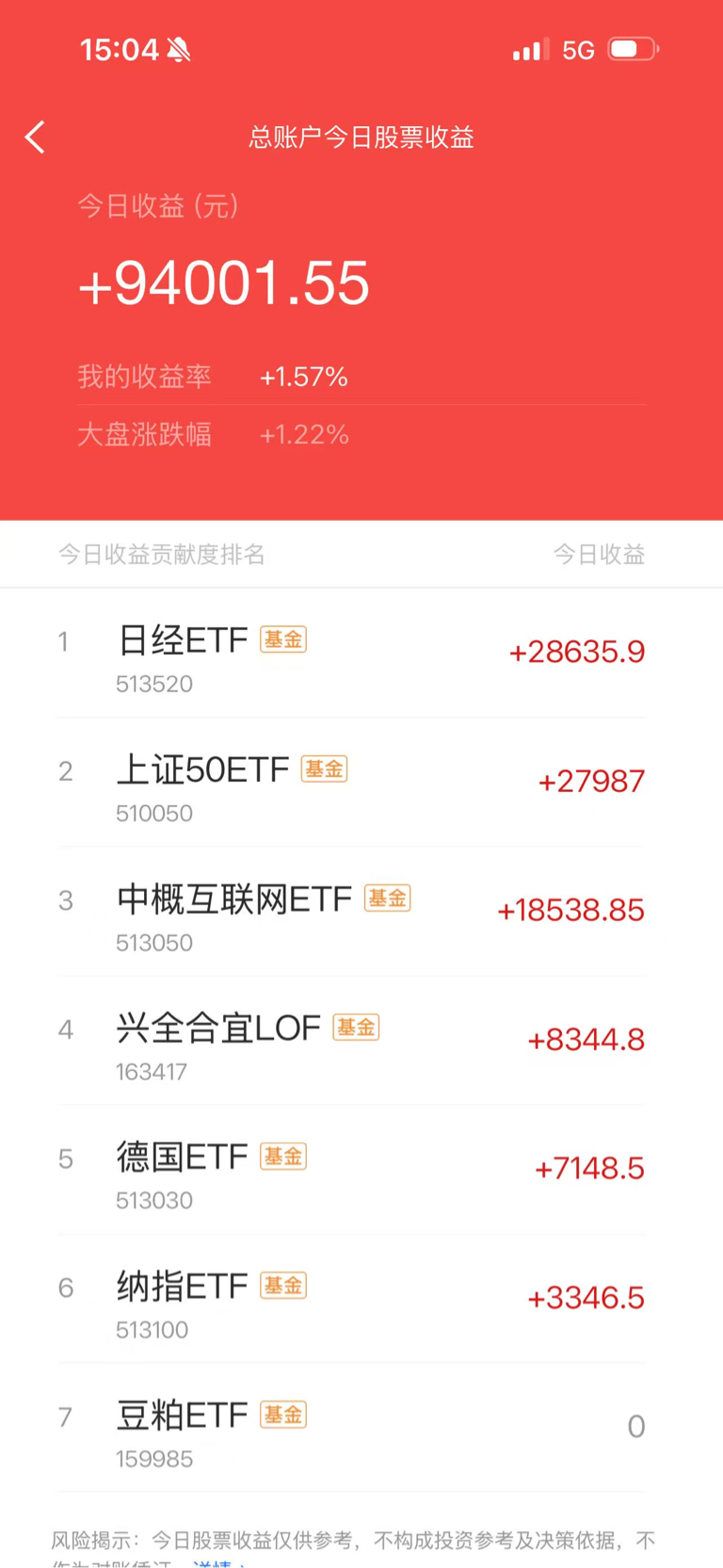 定投第2641天,今日买入中概互联3400股,今日盈亏+9.4万元,累计盈亏+4
