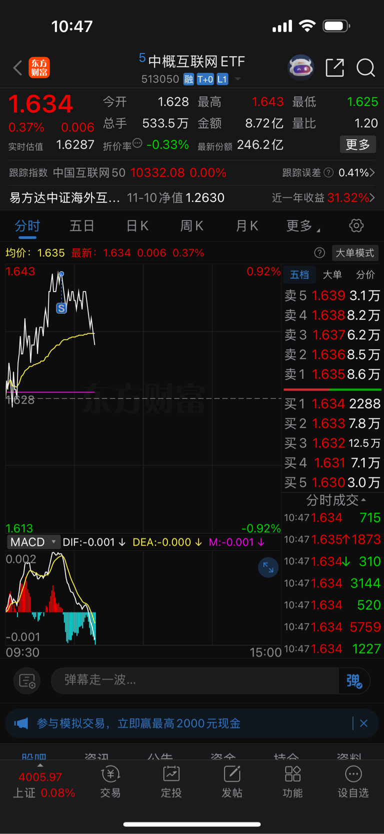 $中概互联网ETF(SH513050)$ 知足常乐