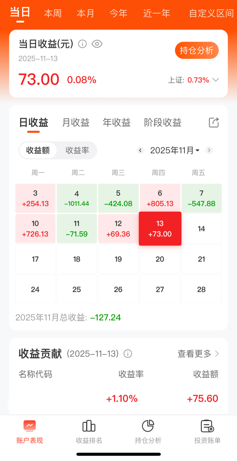 定投第67天,今日盈亏73元,今年累计盈亏16886元,现在我喜欢的两个状态:笃