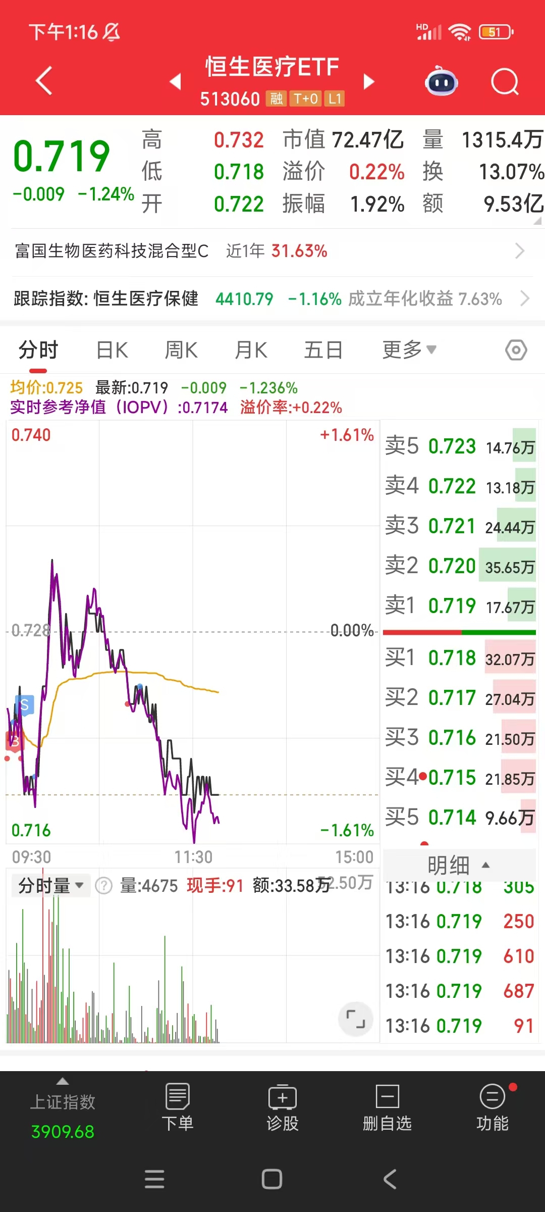 $恒生医疗ETF(SH513060)$ 没操作好,赚了个饭钱,0.705最后一笔