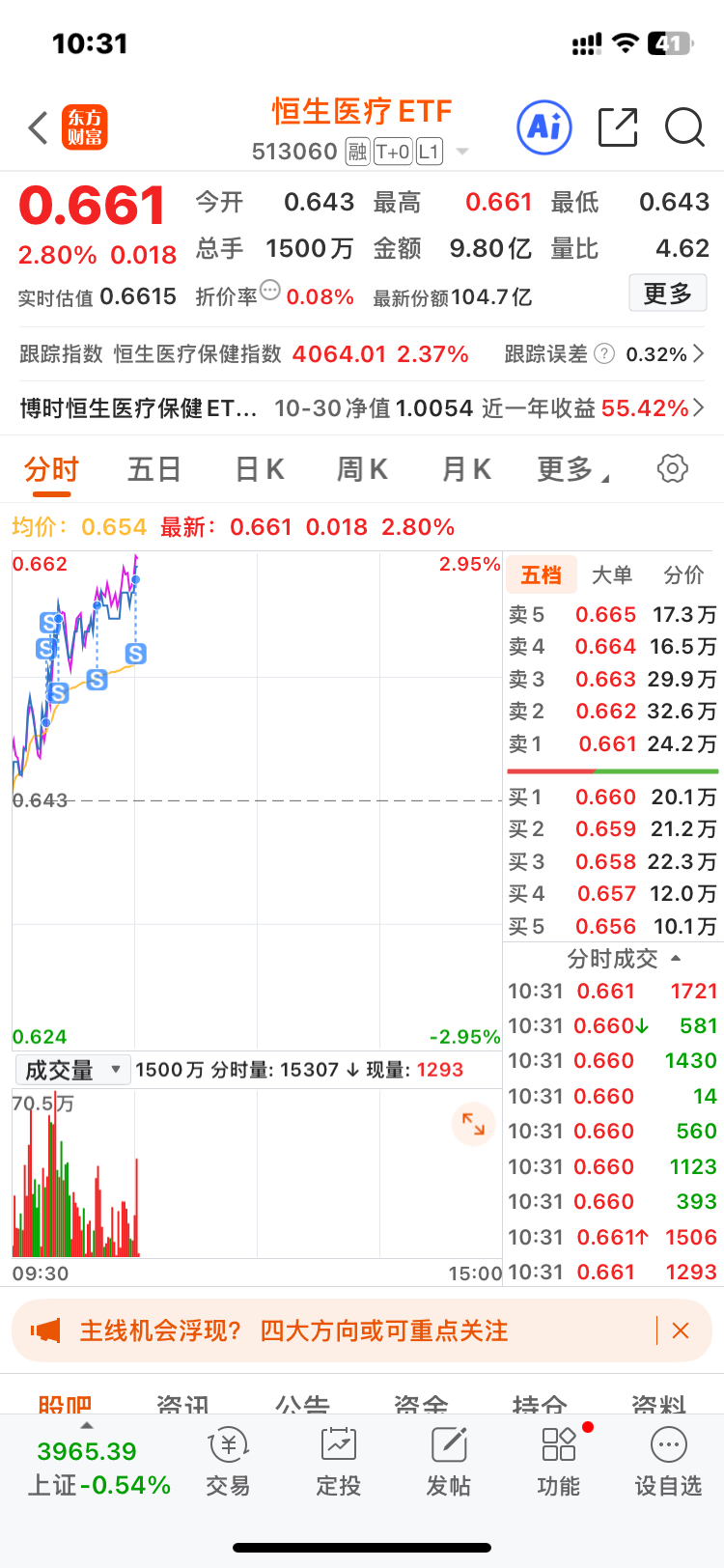 $恒生医疗ETF(SH513060)$ 昨天进,今天出,底仓不变