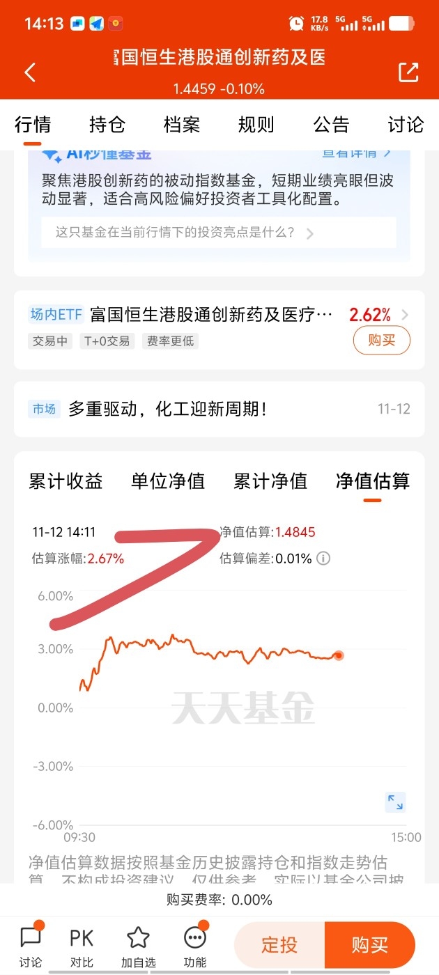 哈哈哈选择比努力更重要吧$富国恒生港股通创新药及医疗保健ETF发起式联接C$ 今天继续吃肉肉又是近3个点了