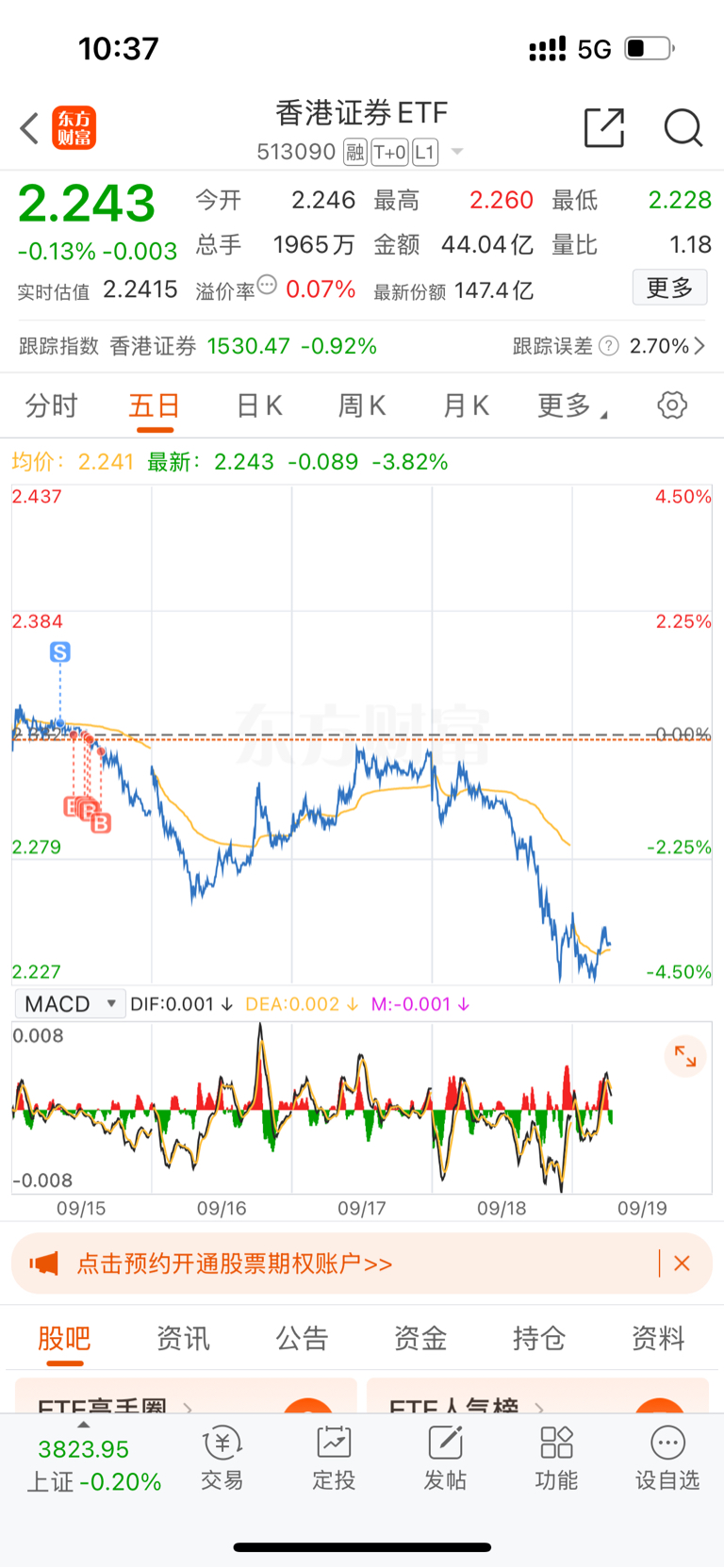$香港证券ETF(SH513090)$ 我的心好痛