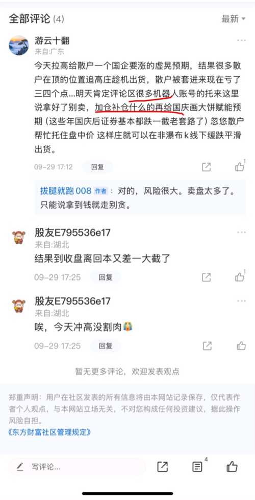 温馨提示: 1.根据《证券法》规定,禁止编造、传播虚假信息或者误导性信息,扰乱证券市场;2.用户在本社区发表的所有资料、言论等仅代表个人观点,与本网站立场无关,不对您构成任何投资建议。用户应基于自己的独立判断,自行决定证券投资并承担相应风险。《东方财富社区管理规定》