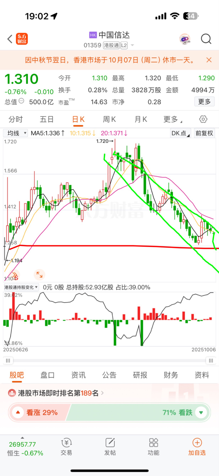 $香港证券ETF(SH513090)$ 最有代表性的出来了,如果这两天跌到红线,节后开盘就走高,回补完毕,如果没到,哦豁节后会变成劫 到时候开盘竞价直接清空,我9月份那波跌也画过这条线,没信的统统吃了十来个点跌,现在再次告诉你真题解答 你的钱包能不能守得住就看自己了。