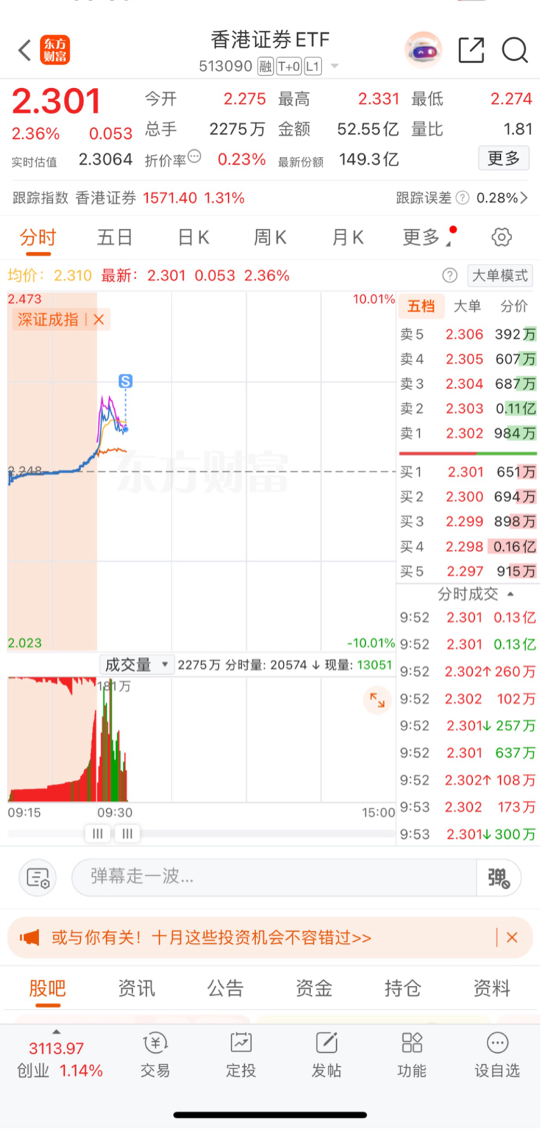 $香港证券ETF(SH513090)$ 又贪了,没来得及跑