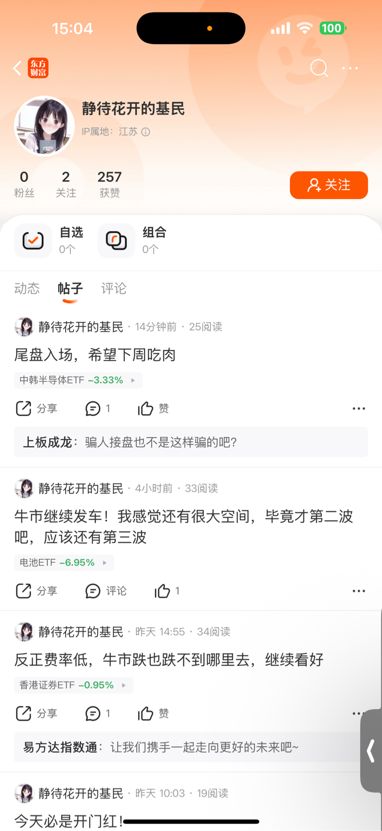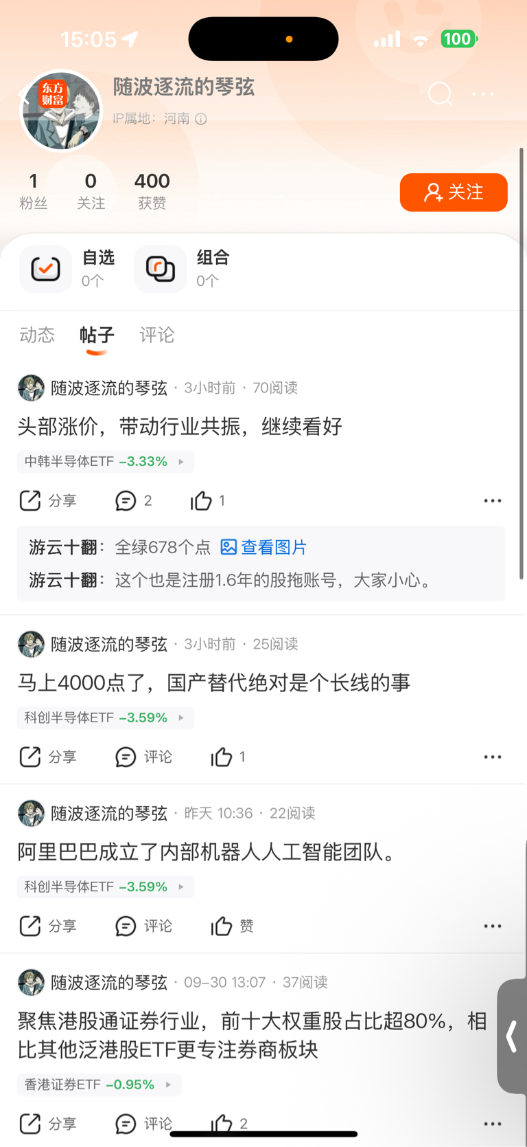 $香港证券ETF(SH513090)$ $中韩半导体ETF(SH513310)$ 知道我为什么每次都能逃顶吗?因为这些注册时长1.6年的托一出来我就开始分批跑路,你看看他们评论过的etf都高度重合而且评论过的etf不是当日跌就是次日跌。