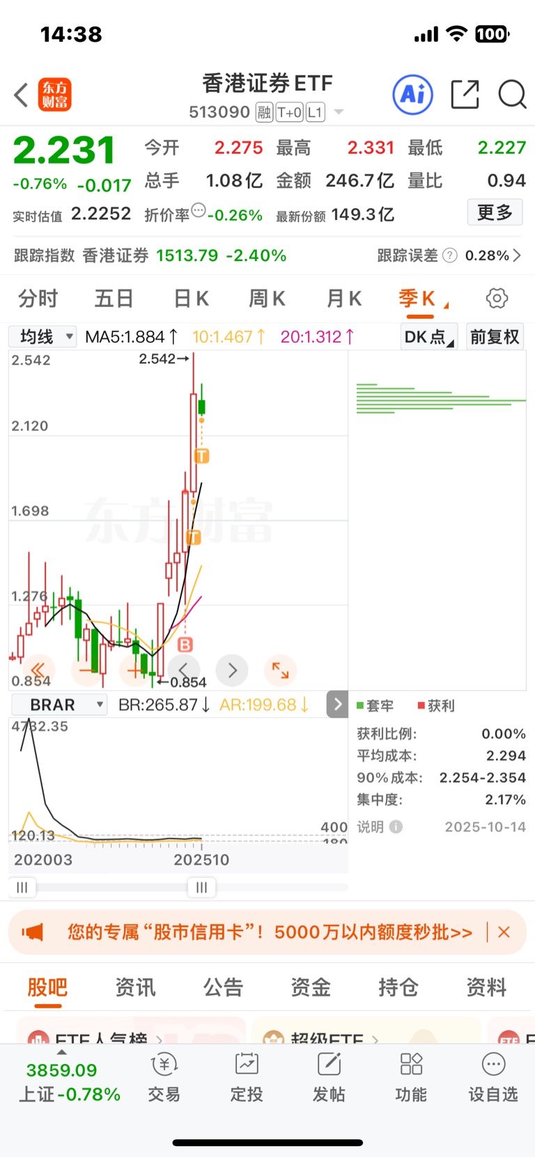 $香港证券ETF(SH513090)$ 有这种吃人的股吗