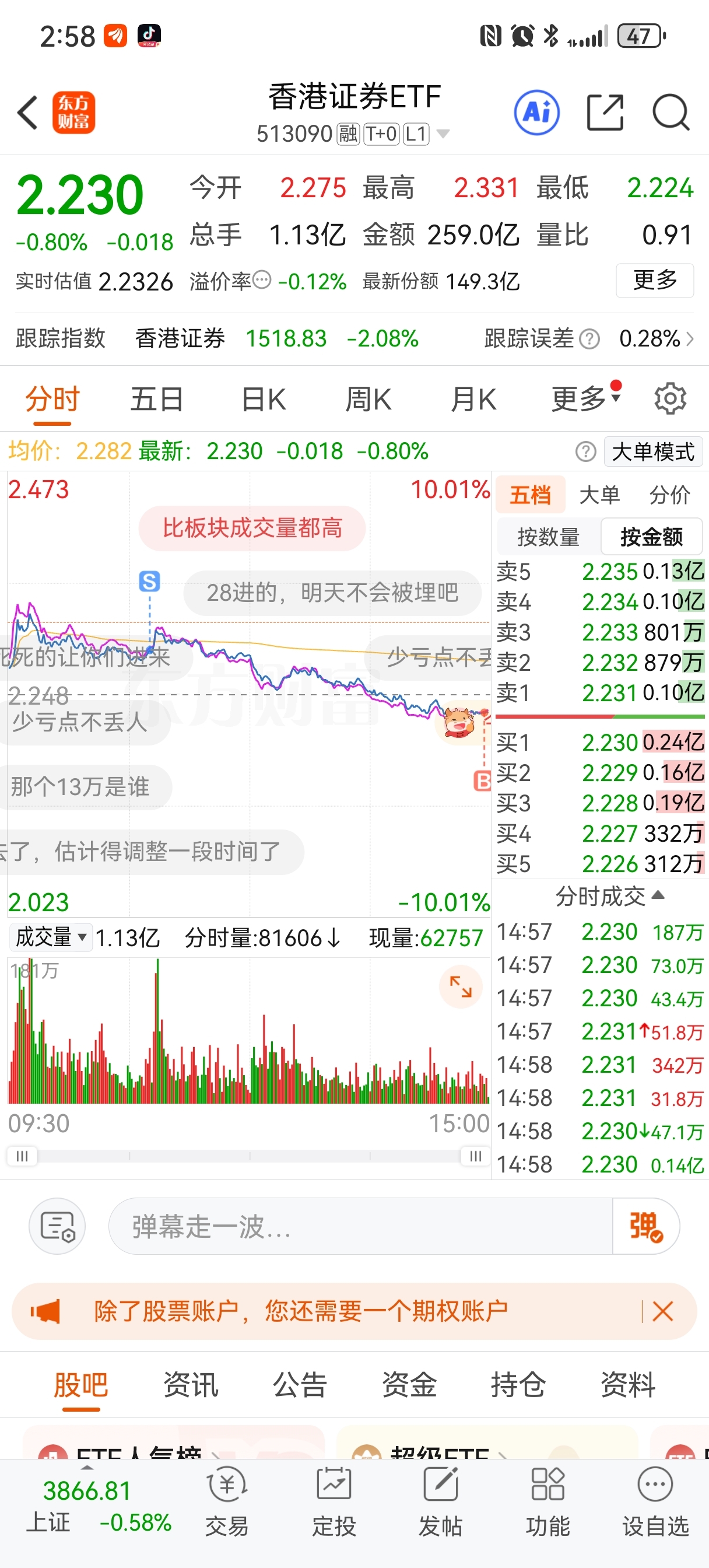 $香港证券ETF(SH513090)$ 早上看情况不对,果断做t卖出。中午差点买进来了,还好忍住了,不然又要跟昨天一样了,尾盘买的