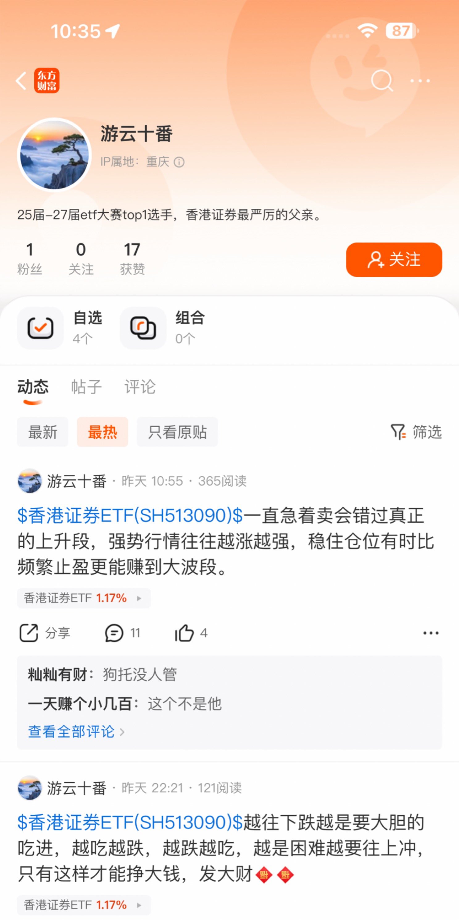 $香港证券ETF(SH513090)$  $中韩半导体ETF(SH513310)$  知道我为什么每次都能逃顶吗?因为这些注册时长1.6年的托一出来我就开始分批跑路,你看看他们评论过的etf都高度重合而且评论过的etf不是当日跌就是次日跌。