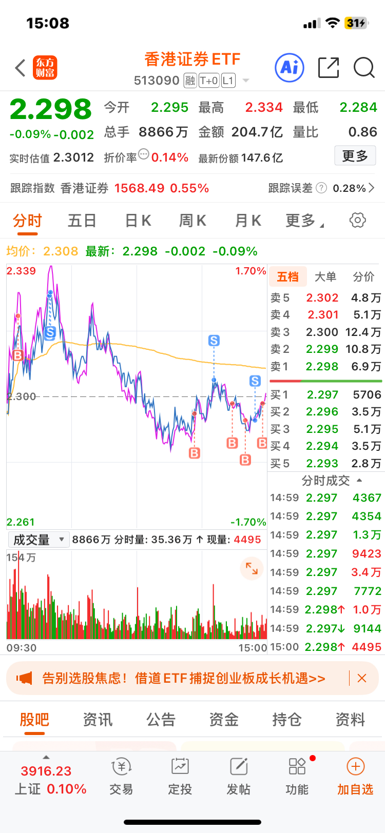 $香港证券ETF(SH513090)$ 我又进来了,打我呀