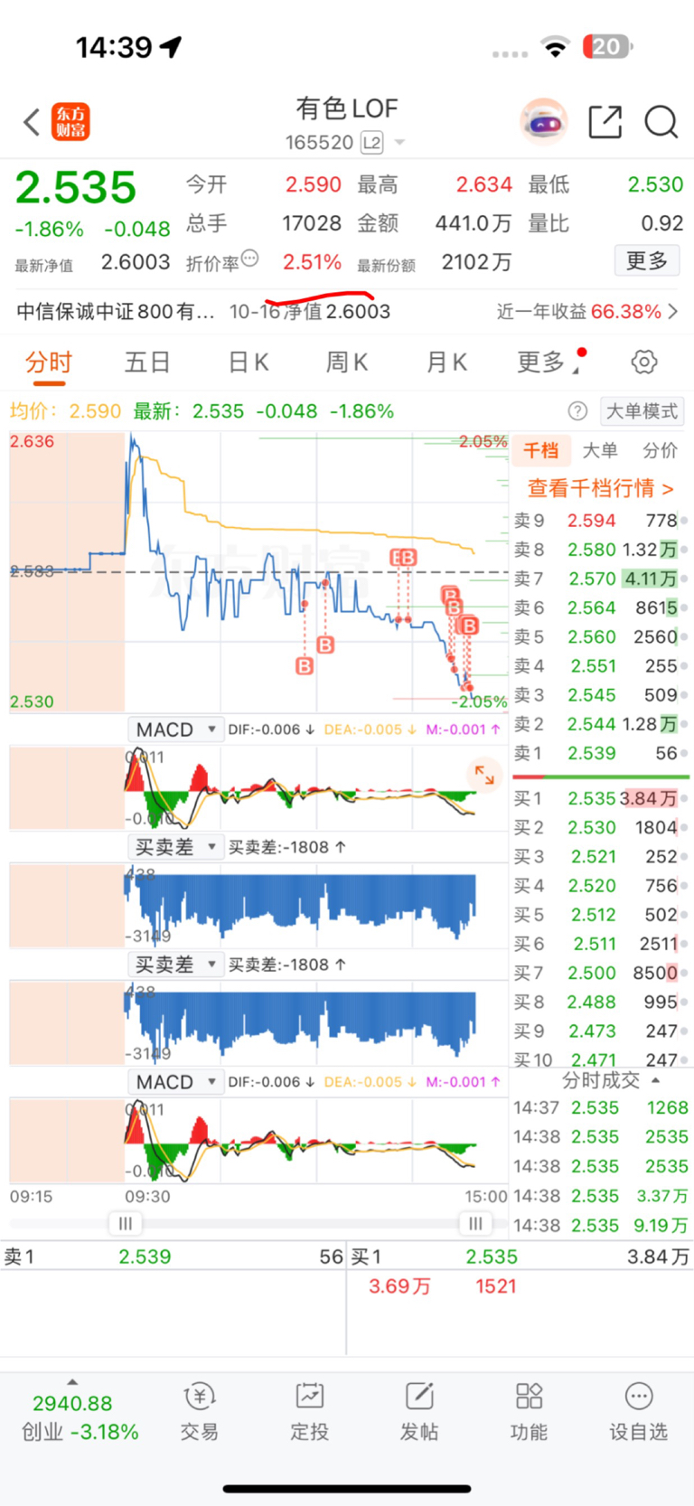 $香港证券ETF(SH513090)$ 好像我早上没提醒一样哈哈,老粉们今天真正该抄底的就是之前你们在里面赚过的$有色LOF(SZ165520)$ 现在折价2.51%也就是说只要你能在不超过2.585内买进去,下周就有惊喜,请在收盘前5分钟抄底抢筹码,下课哈哈哈。